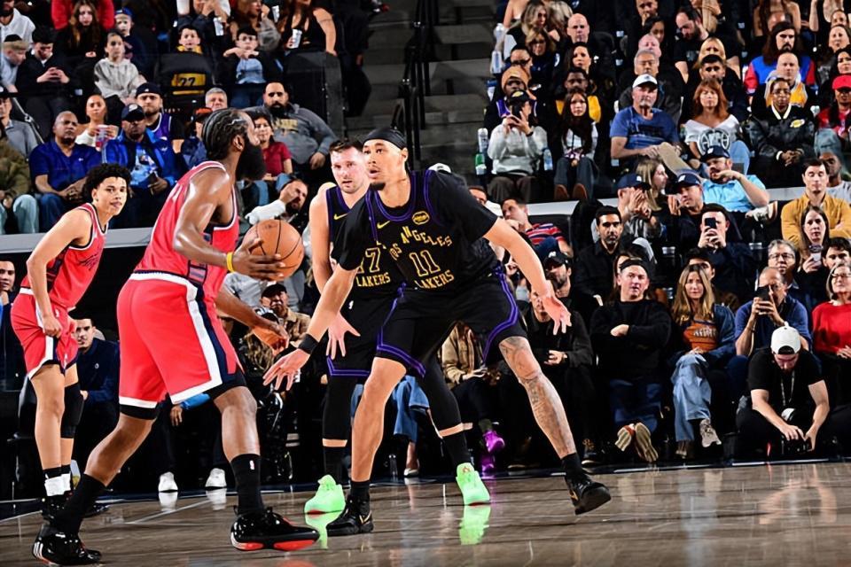 本场比赛中,湖人的替补中锋贾克森-海斯(Jaxson Hayes)的表现其实也算是尽力了。海斯全场出场16分34秒,投篮4中3,得到了6分2篮板1盖帽的数据,还有1次失误和2次犯规,正负值为-4。海斯的出场时间和出手次数都比较有限,他在这种情况下也算是得到了一些分数,并没有浪费太多的机会。海斯在防守端在防守意识和选位方面还是存在着一些问题的,但是他还是显得非常积极的,他也在努力对对手进行限制。总体来看,海斯的表现虽然不算是特别突出,但是好歹也是能够起到一定的作用的。相比于球队的先发中锋德安德烈-艾顿(DeAndre Ayton),至少海斯没有给球队造成什么麻烦。